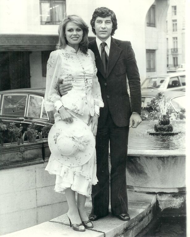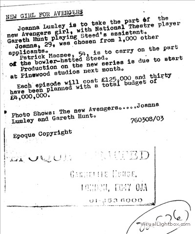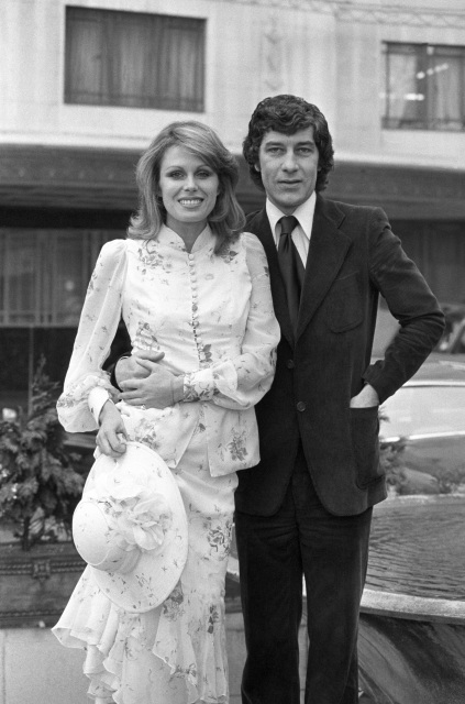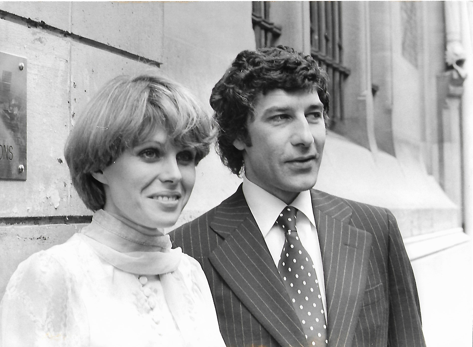 Gareth Hunt and Joanna Lumley at the Dorchester Hotel photocall introducing them as Steed's new partners. Taken March 8, 1976