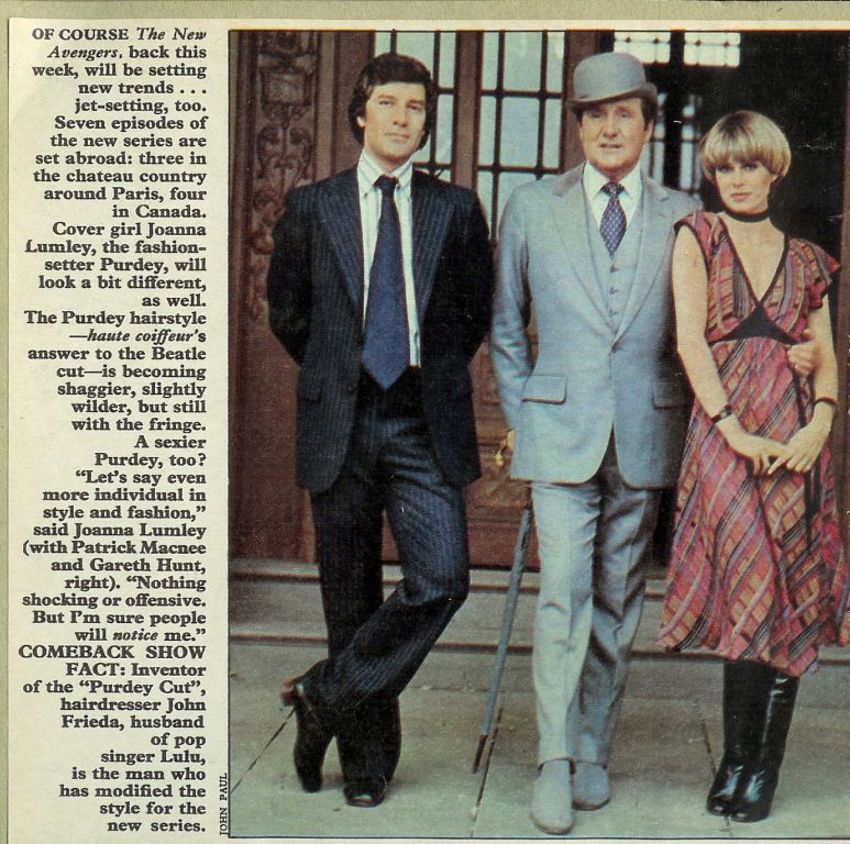 The cast pose with participants in the Purdey lookalike competition in April 1977